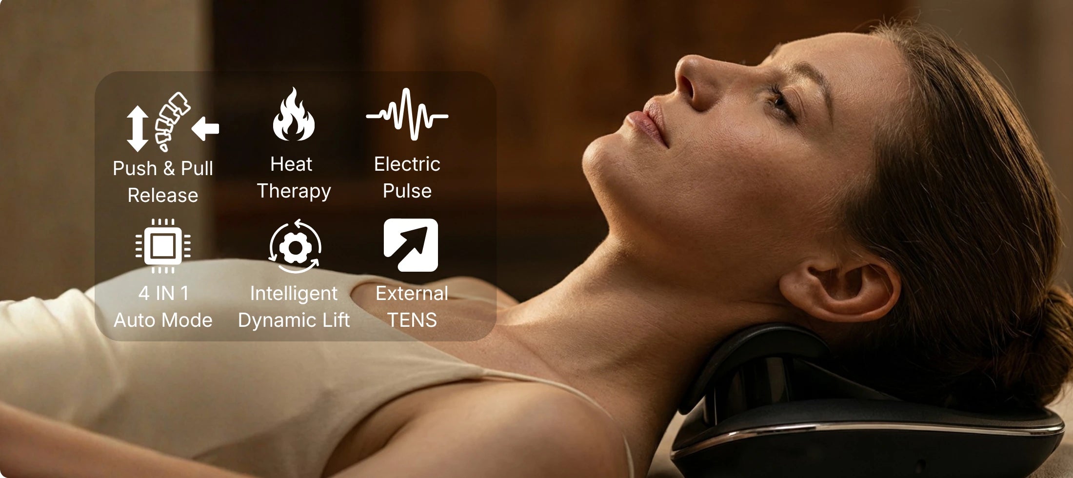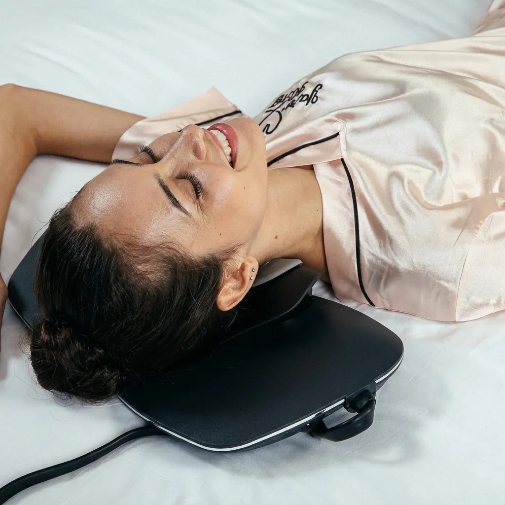 Long hours at a desk, screen time, and poor posture can put extra strain on the neck and affect its natural curve. Hypertrax uses dynamic dual air traction to gently lift and stretch the neck, while EMS, heat, and red light help create a more relaxed and comfortable feel during each session.