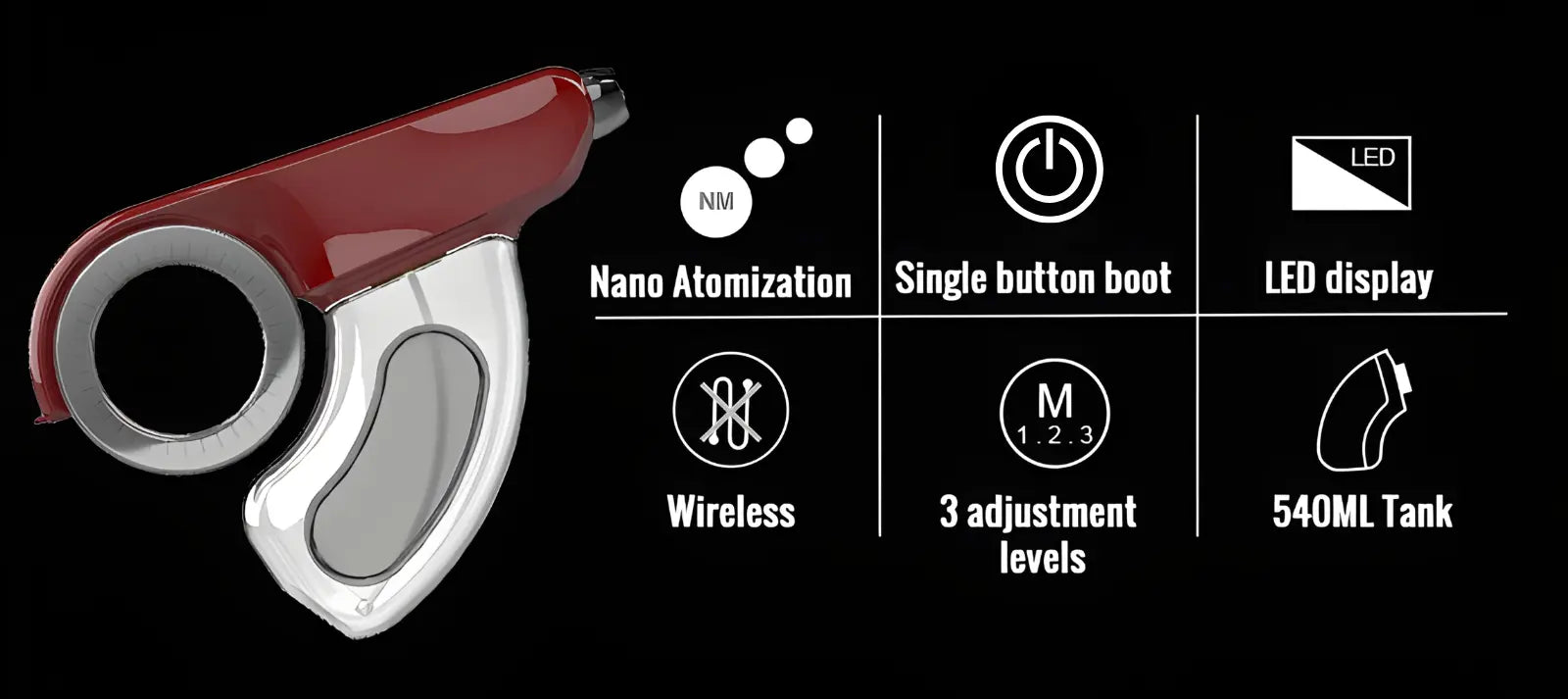 - High-Capacity 540ml Tank: Delivers 25 minutes of continuous misting per fill.